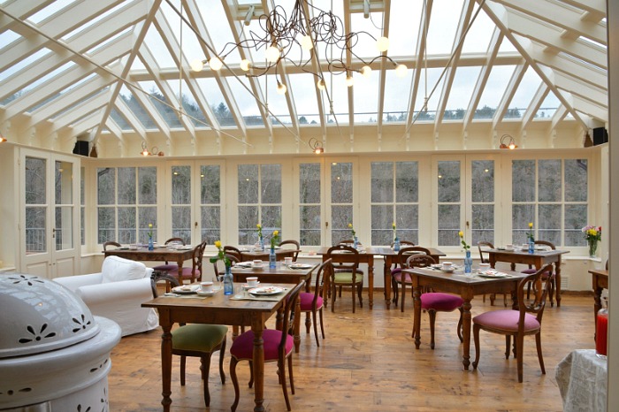 All'interno una sala ristorante.