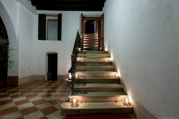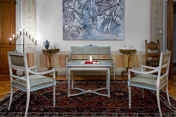 La location dispone di ampi e luminosi saloni con diverse capacità, decorati con arredi dell'epoca, tappeti e tessuti pregiati, affreschi sui soffitti e sulle pareti e numerosi dettagli decorativi che creano un'atmosfera tipica d'altri tempi.