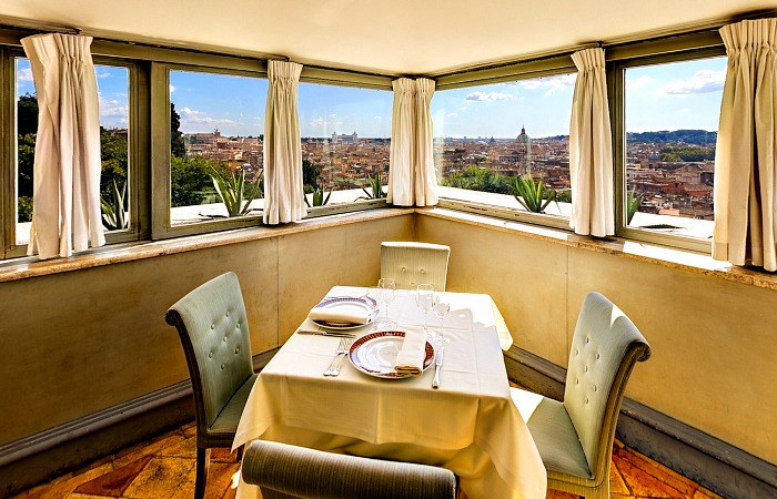 A due passi da Piazza di Spagna, dalle sue terrazze si può godere della straordinaria bellezza della capitale. il ristorante offre la possibilità di gustare una raffinata cucina italiana.