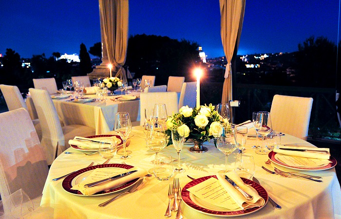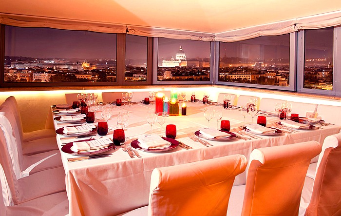 1 terrazza coperta con vista mozzafiato a 180° su Roma che ospita fino a 70 persone sedute e 100 in piedi; 1 sala gala per eventi fino a 150 persone sedute e 200 in piedi; 3 sale private per eventi fino a 16 persone sedute e 20 in piedi; 1 piano executive per eventi fino a 65 persone sedute e 80 in piedi; 1 sala con i muri dell’antica cisterna romana visibile, fino a 40 persone sedute e 60 in piedi.