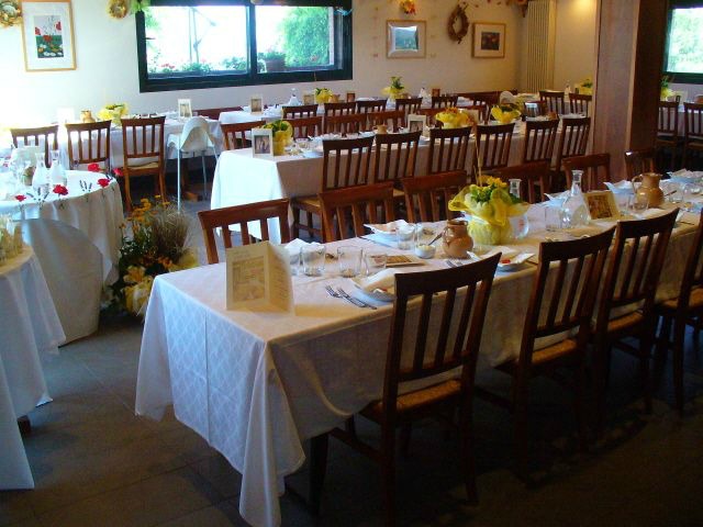 Abbiamo una sala intima per ricevimenti fino a 25 ospiti e un’altra sala che può ospitare 90 persone cui possono aggiungersi ulteriori 100 invitati nell’attigua veranda coperta e chiusa.