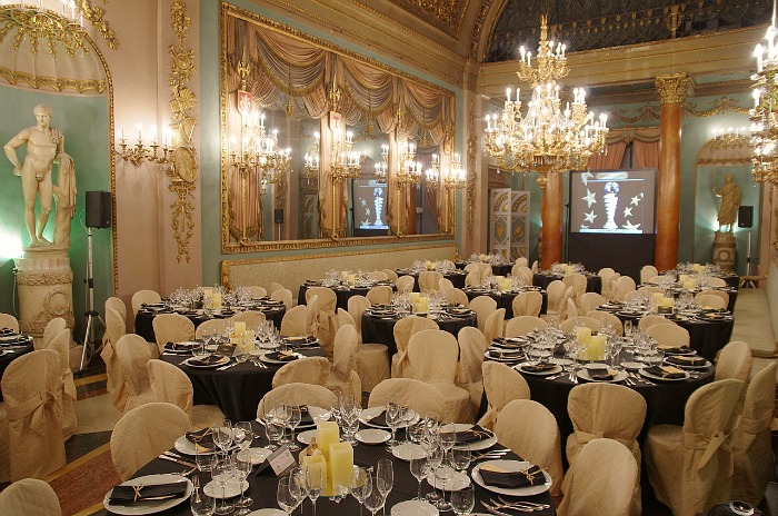 Il Palazzo, la cui sala più grande accoglie 100 invitati, ha altri 7 saloni adiacenti che possono essere utilizzati in base alle differenti esigenze.