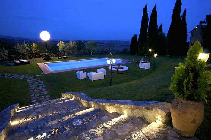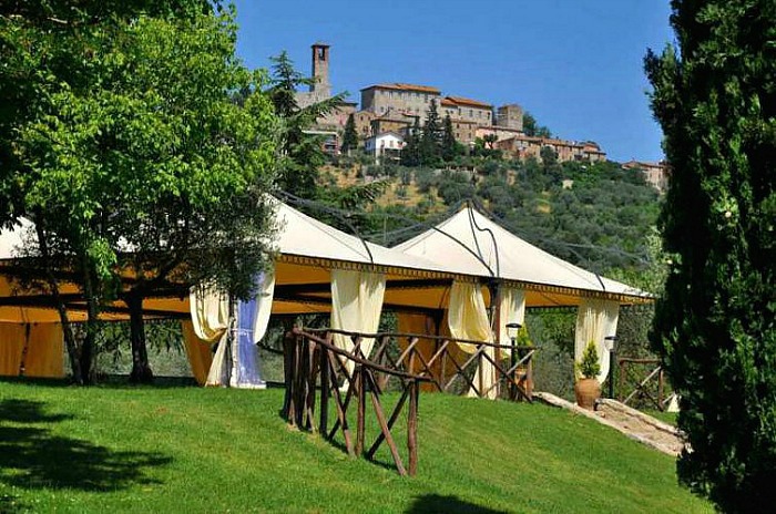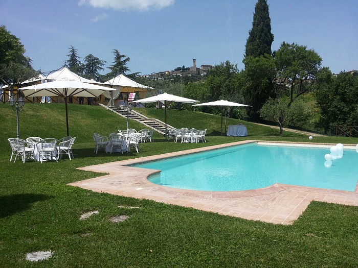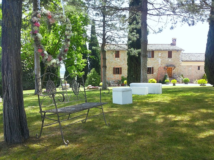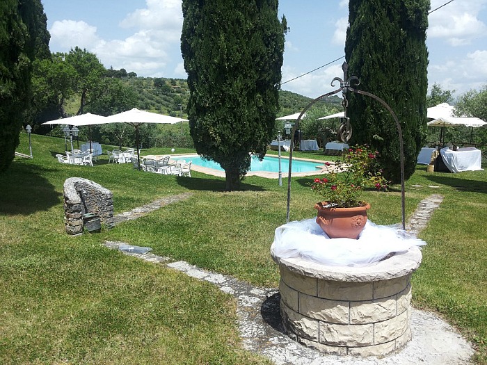 La Struttura è circondata da un bel giardino con prato all'inglese, pineta, patio e da una piscina panoramica; il Gazebo esterno può ospitare fino ad un massimo di 200 persone.