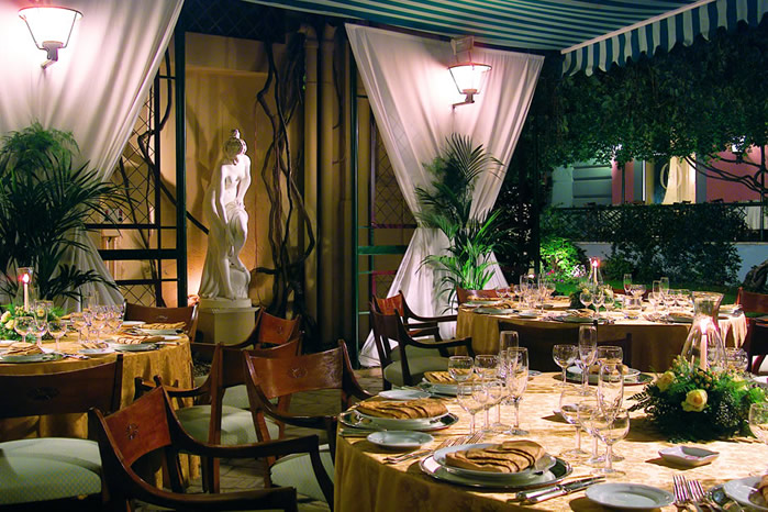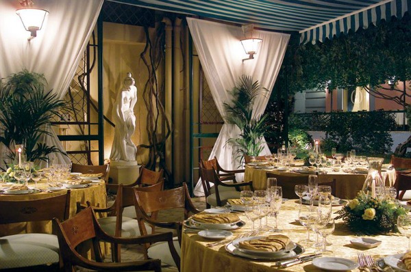 Possibilità di banchetti fino a 250 persone, nel meraviglioso salone delle feste oppure in giardino: una location matrimoni unica nel centro di Roma.