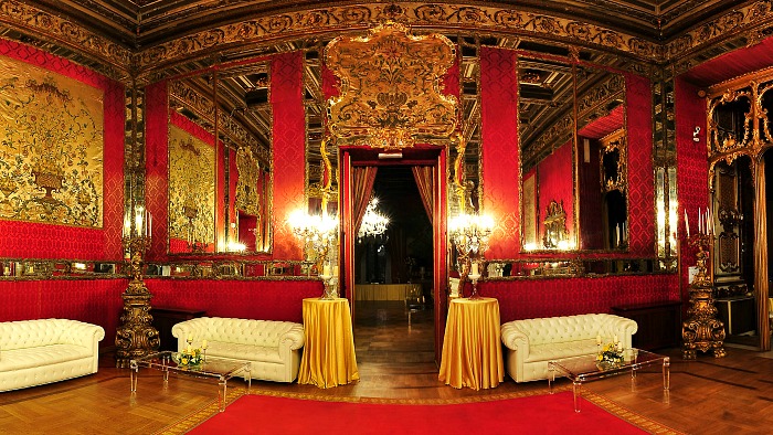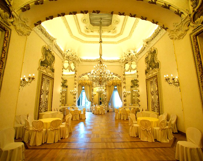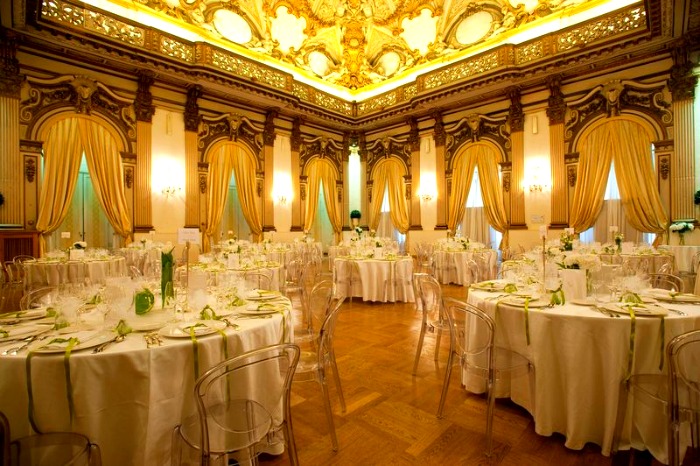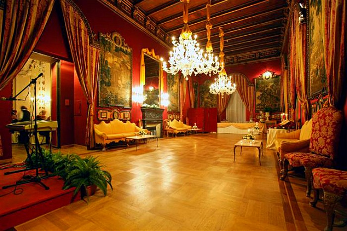 All'interno i vari saloni possono ospitare un massimo di 500 persone