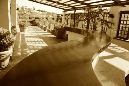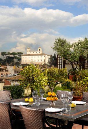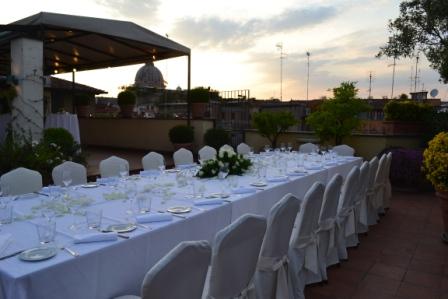 Il vastissimo terrazzo dell’ultimo piano dell’hotel, con un’ampiezza di 200 mq permette una vista emozionante sul mare di rossi tetti, terrazzi e cupole. È la location perfetta per cene e feste private, eventi e cerimonie di prestigio inebriati dal profumo dei gelsomini e degli aranci selvatici di questo giardino pensile.