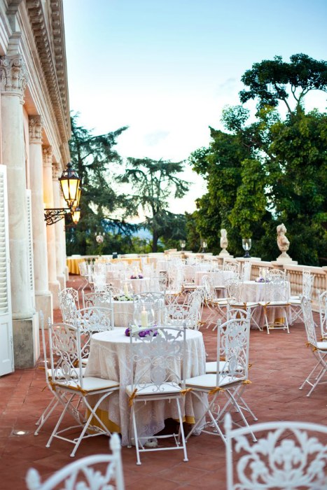 Terrazza che può ospitare fino a 350 persone ed il magnifico parco intorno alla villa.