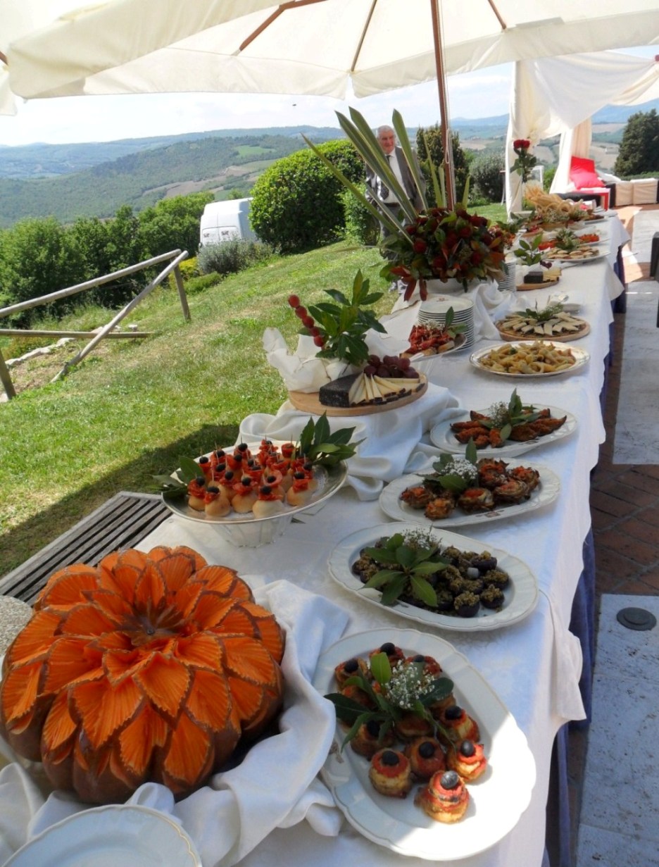 Terrazzo panoramico con vista sulla campagna umbra dove è possibile allestire i buffet per aperitivi ed antipasti e per il taglio della torta nuziale.