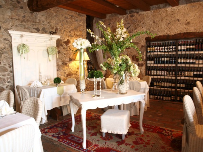 a cucina propone piatti di carne e pesce preparati con ingredienti naturali secondo un rigido criterio di stagionalità. Una ricca carta di vini particolarmente selezionata potrà soddisfare ogni esigenza.
