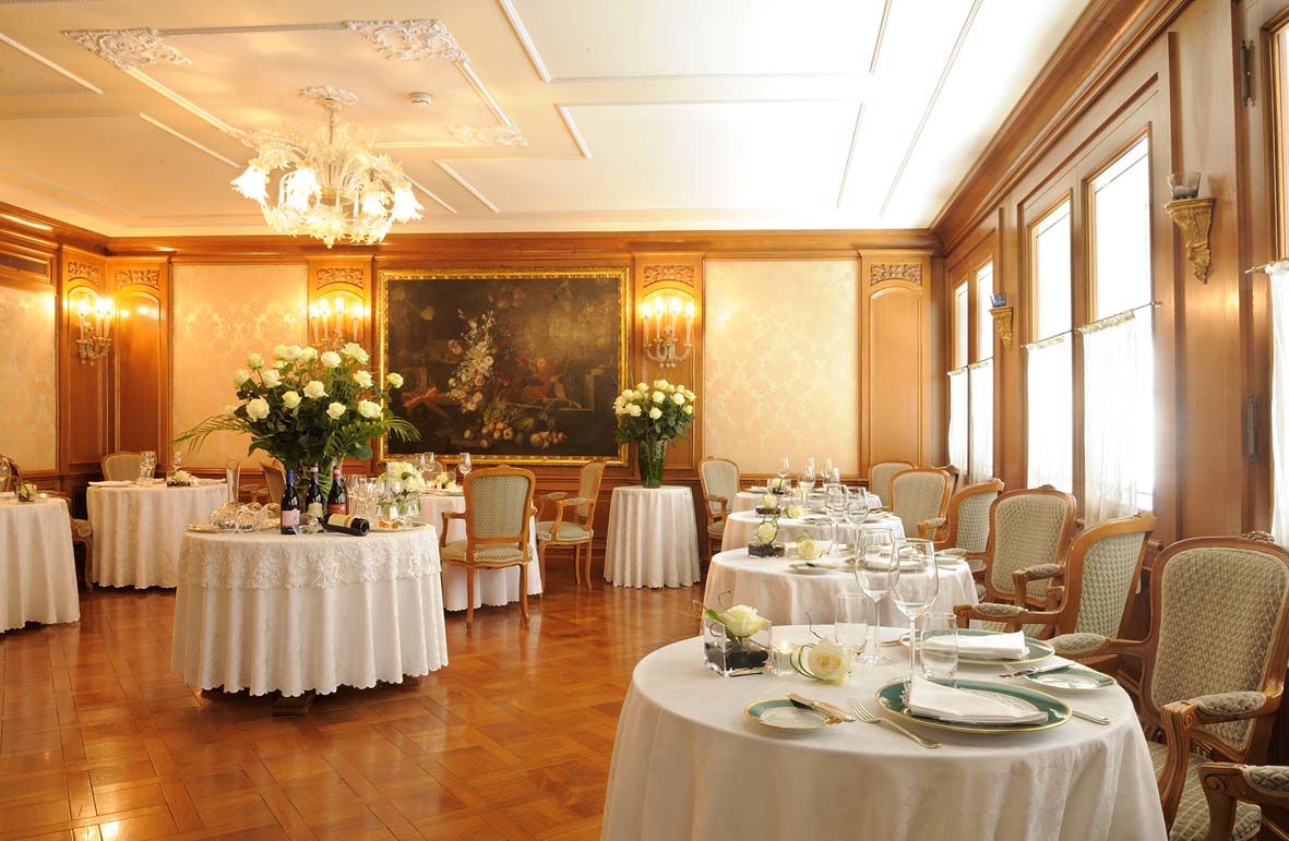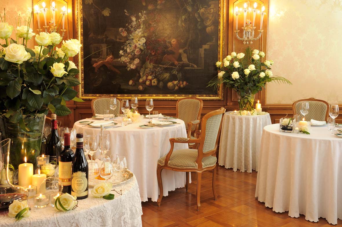 Sala Sansovino ed il Caffè ideali per il cocktail di benvenuto ; Sala Caminetto, con camino acceso nel periodo invernale, l’intima Sala Arazzo con i suoi 15 posti, il Ristorante perfetto per banchetti fino a 60 coperti ed infine il meraviglioso Salone Marco Polo che può ospitare fino a 170 invitati.