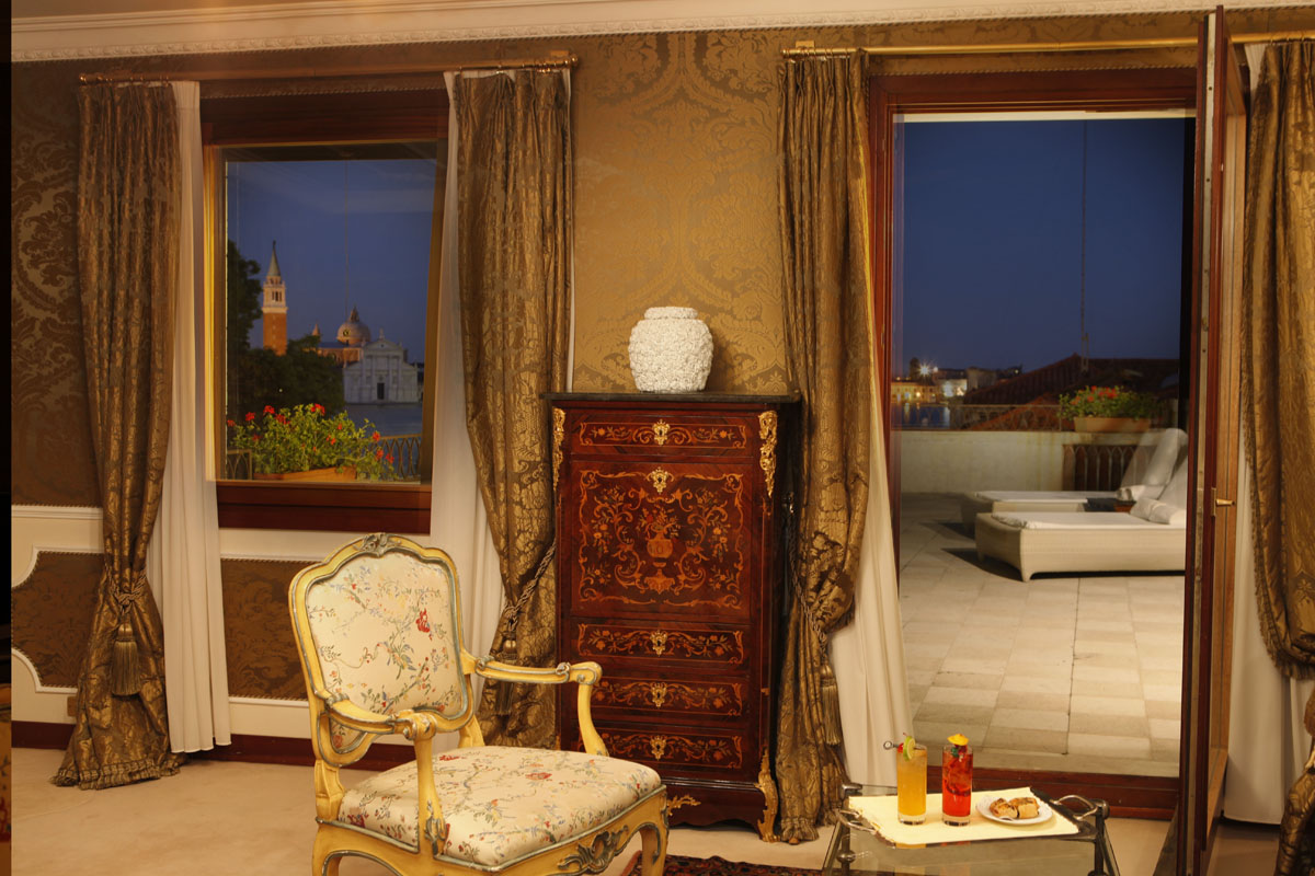 L'Hotel dispone di 104 camere. Le lussuose camere, tutte spaziose, sono arredate con gusto e dotate di tutti i comfort. Le Suite più esclusive dell’hotel possiedono ampie terrazze dalle quali si può godere di una magnifica vista sulla Laguna e il Bacino di San Marco. I recenti lavori di ristrutturazione hanno ampliato l’offerta di Camere Deluxe, Junior Suite e Suite; le tonalità del beige e i colori pastello si fondono armoniosamente con i ricchi broccati donando all’ambiente sensazioni di un lusso caldo e accogliente. Questa ricca scelta di appartamenti è completata dagli alti standard di servizio, testimoniati dei numerosi premi vinti dall’hotel.