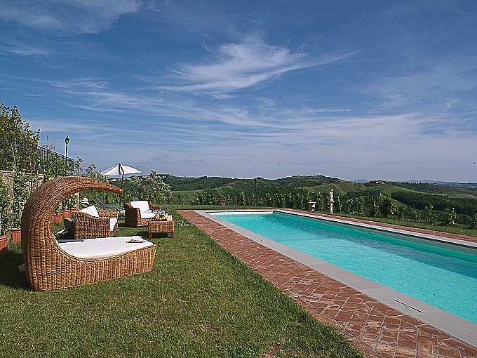 Splendida villa dell'800 situata sulla sommità di una delle più belle colline che caratterizzano l'incantevole paesaggio del Chianti Fiorentino, a pochi passi dall'antico paese di Certaldo. Esclusiva, lussuosa, immersa in un curatissimo giardino in cui si inserisce la splendida piscina di design, scorci mozzafiato tanto dalle finestre della villa che dalle terrazze, dal giardino e dalla piscina.