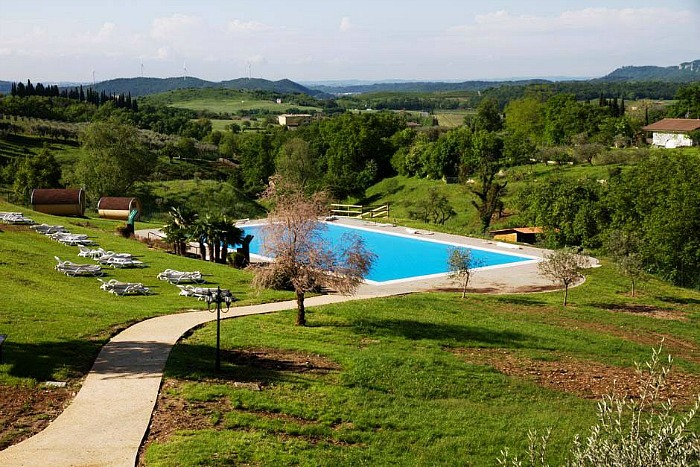 Ampio parco esterno, piscina e terrazza esterna con vista panoramica.