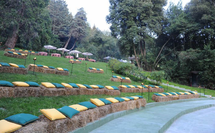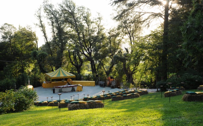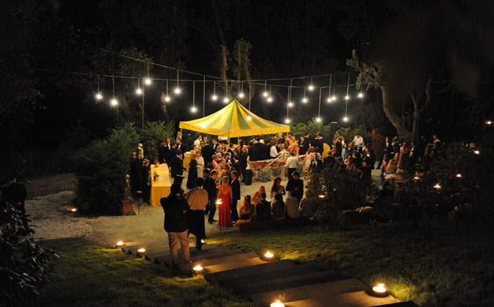 La splendida corte settecentesca della Villa, elegantemente coperta, che può ospitare fino 200 invitati seduti.