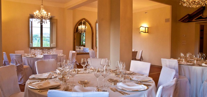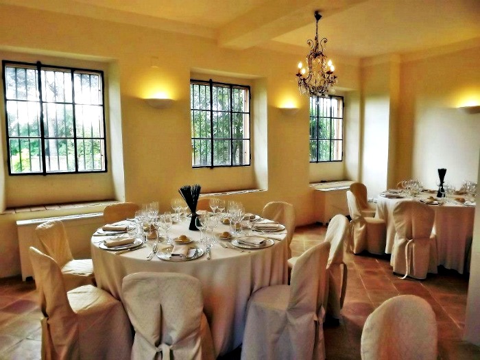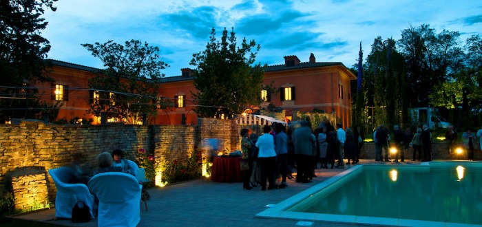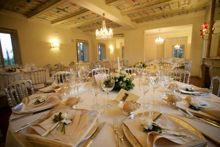 La location dispone di due saloni elegantemente affrescati, con uscite sul giardino all'italiana, che possono accogliere fino a 200 invitati.