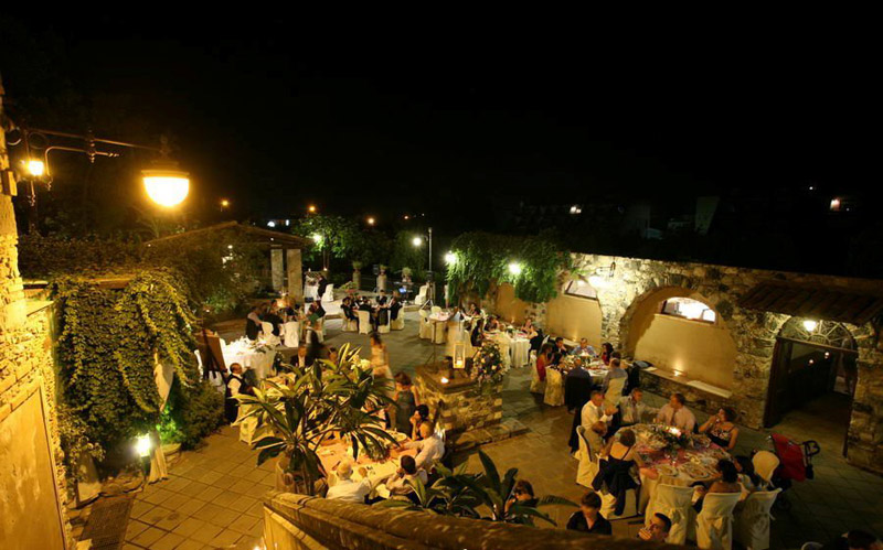 Antipasto a buffet e ampio menù ricevimento servito al tavolo, per un minimo garantito di 90 persone. Torta nuziale e open bar con distillati e assortimento di frutta.
